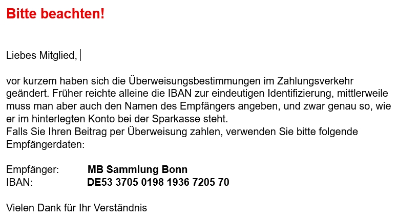 Schwerpunkte der Aktivitäten der MB Sammlung sind: